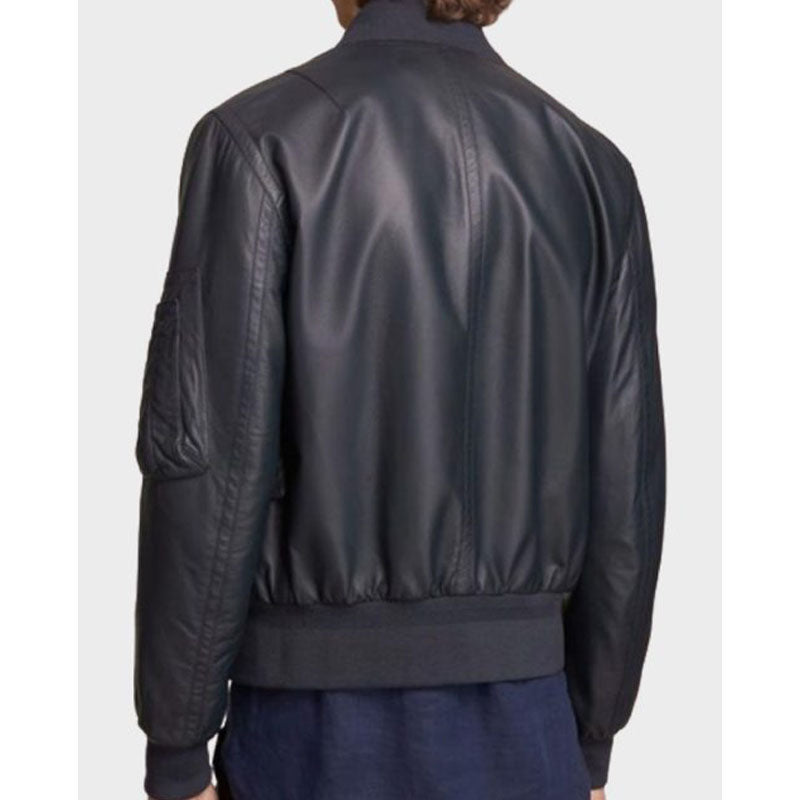 Mens Multi Pockets Flight Black Bomber Leather Jacket