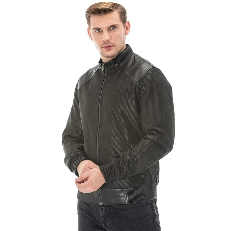 Real Black Leather Square Printed Vegetal Jacket For Men’s