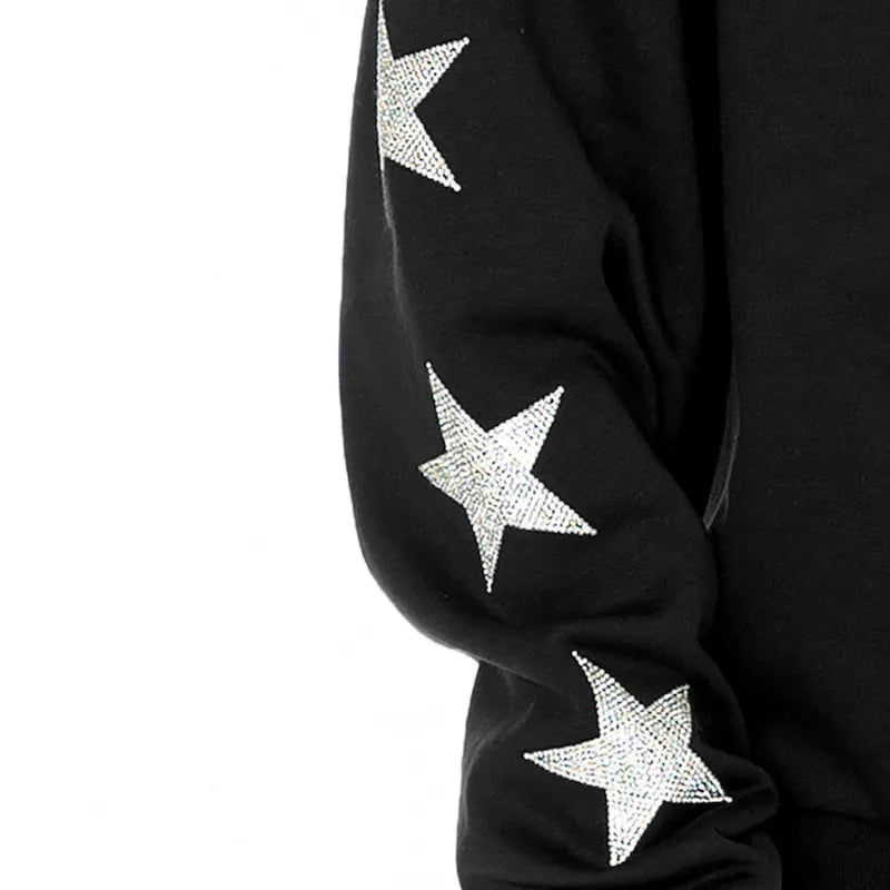 Women’s Detroit Lions Gameday Couture Black Rhinestone Star Sleeve Settle the Score Tri-Blend Pullover