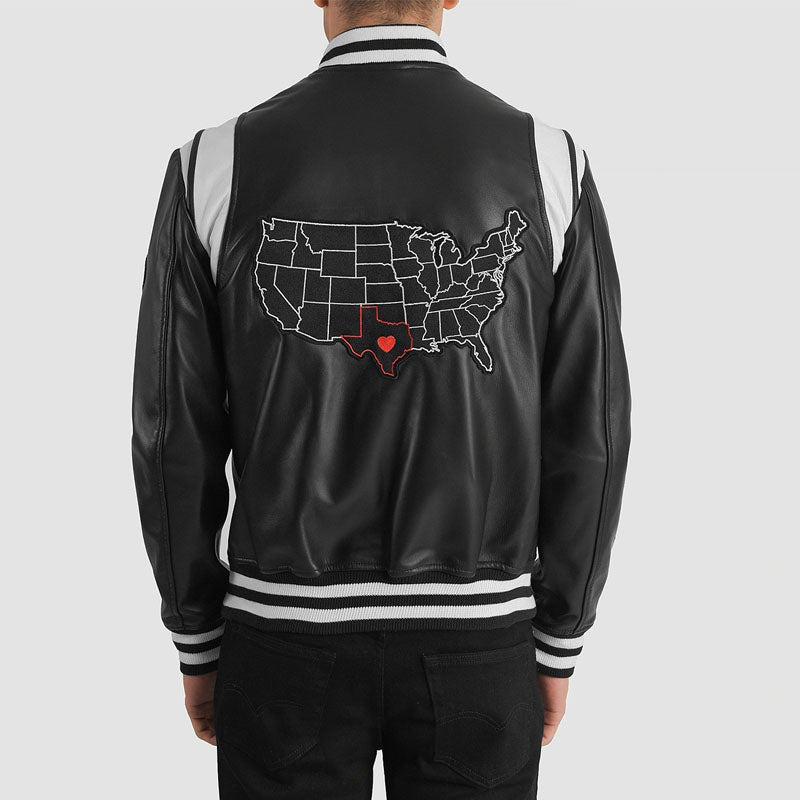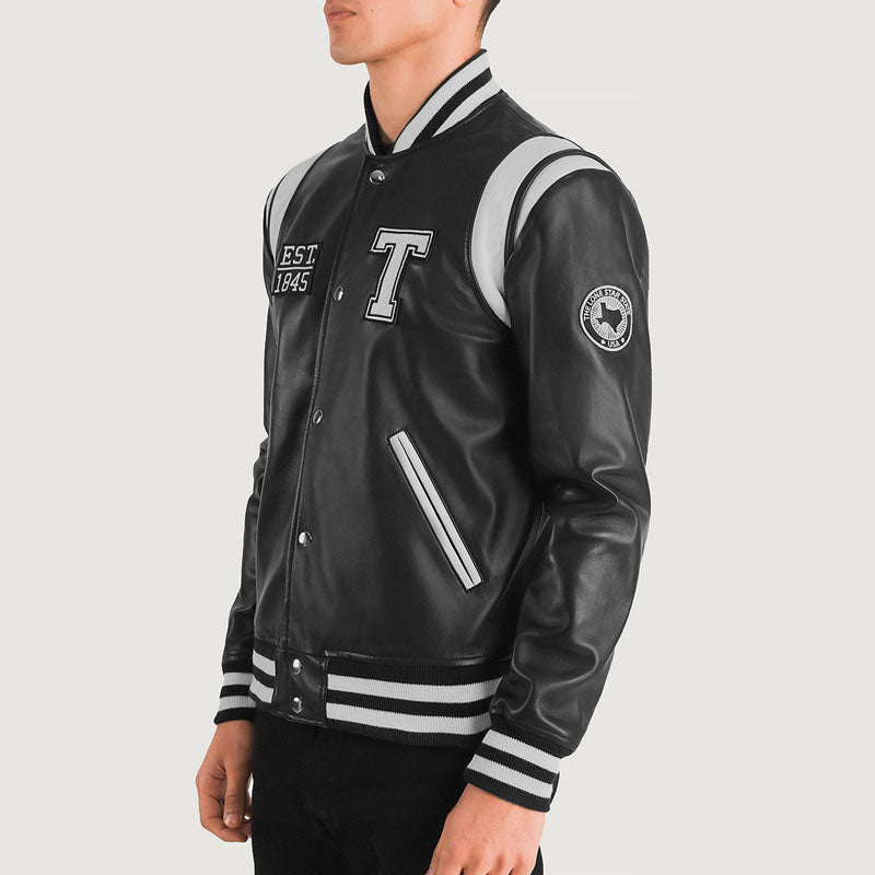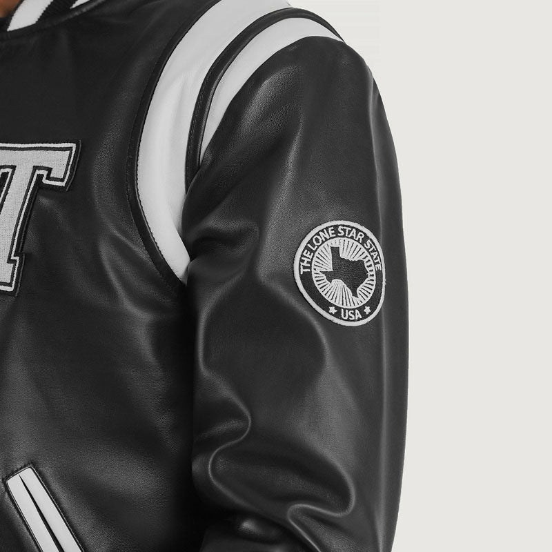 Liberte Texas Black Leather Varsity Jacket For Mens