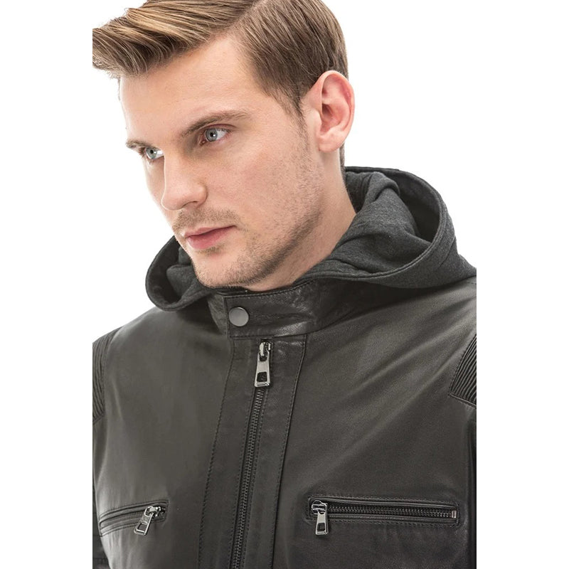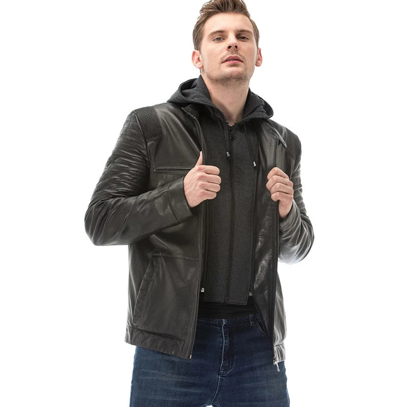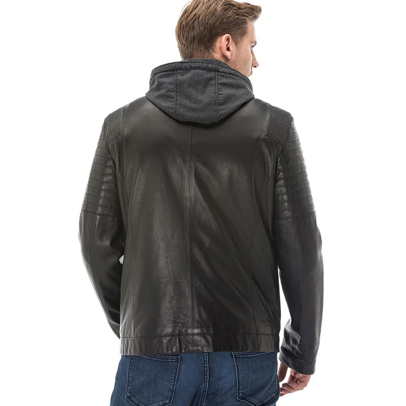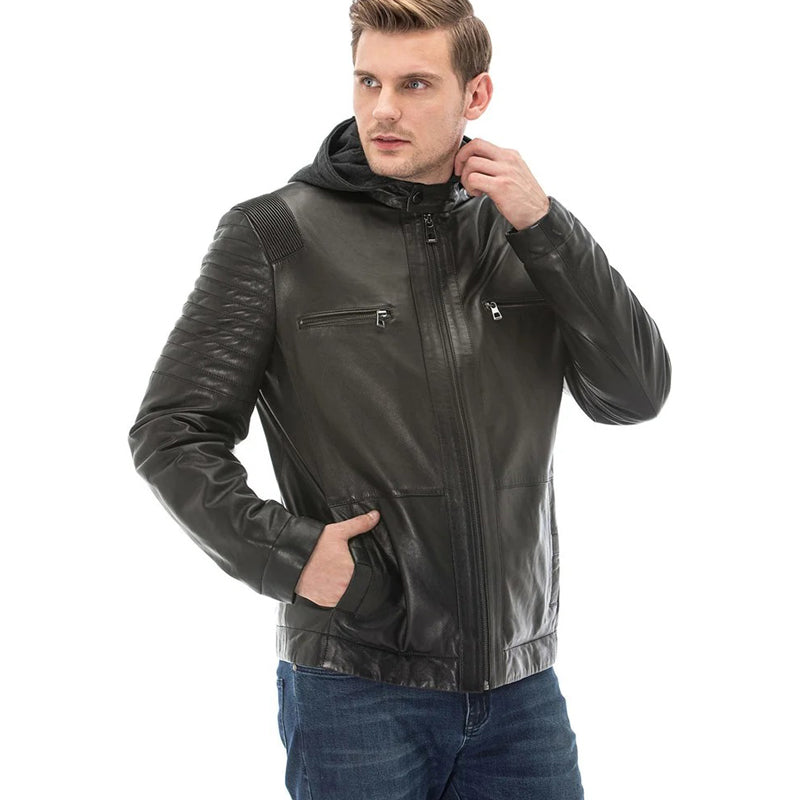 Men’s Real Black Leather Hooded Vegetal Jacket