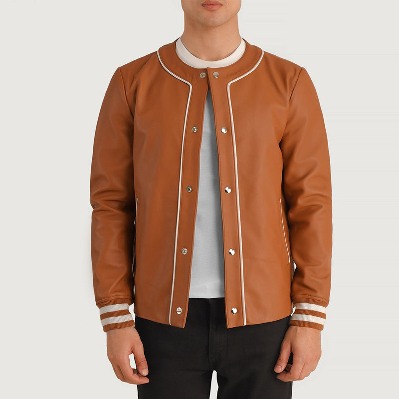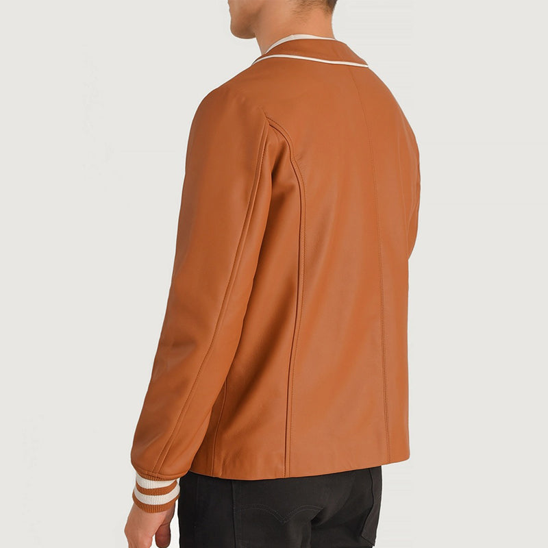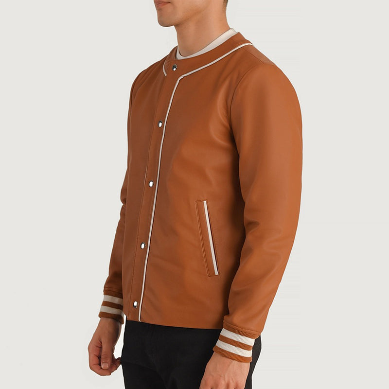 Willis Tan Brown Leather Varsity Jacket For Men’s