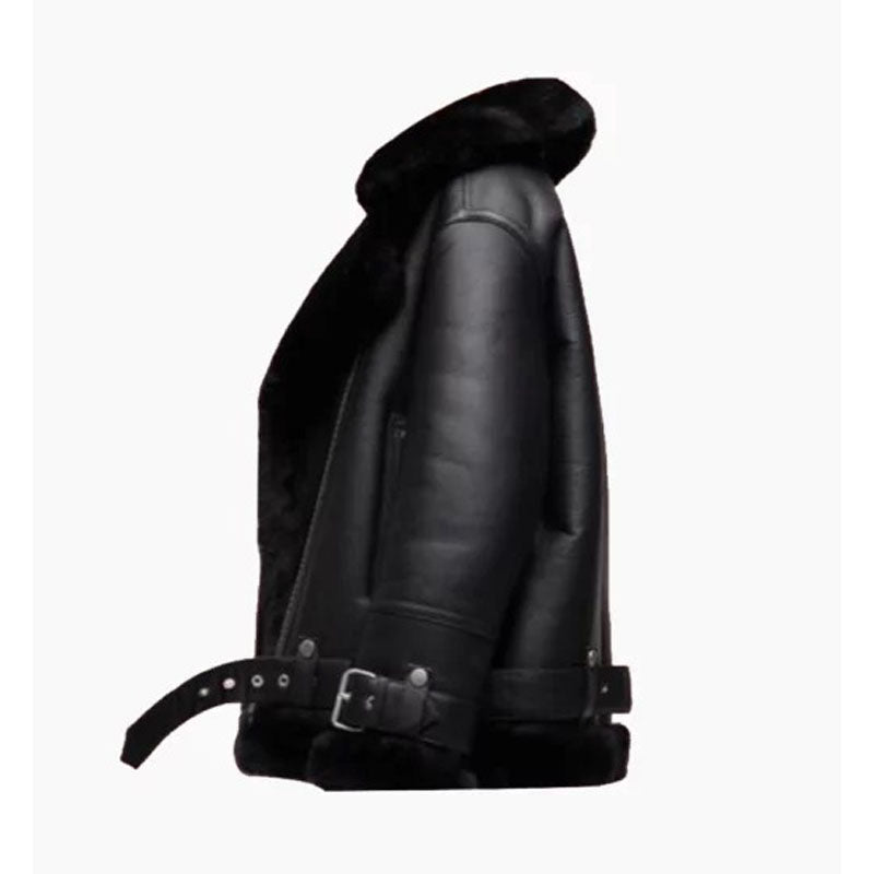 Women’s Black Moto Aviator Leather Shearling Jacket