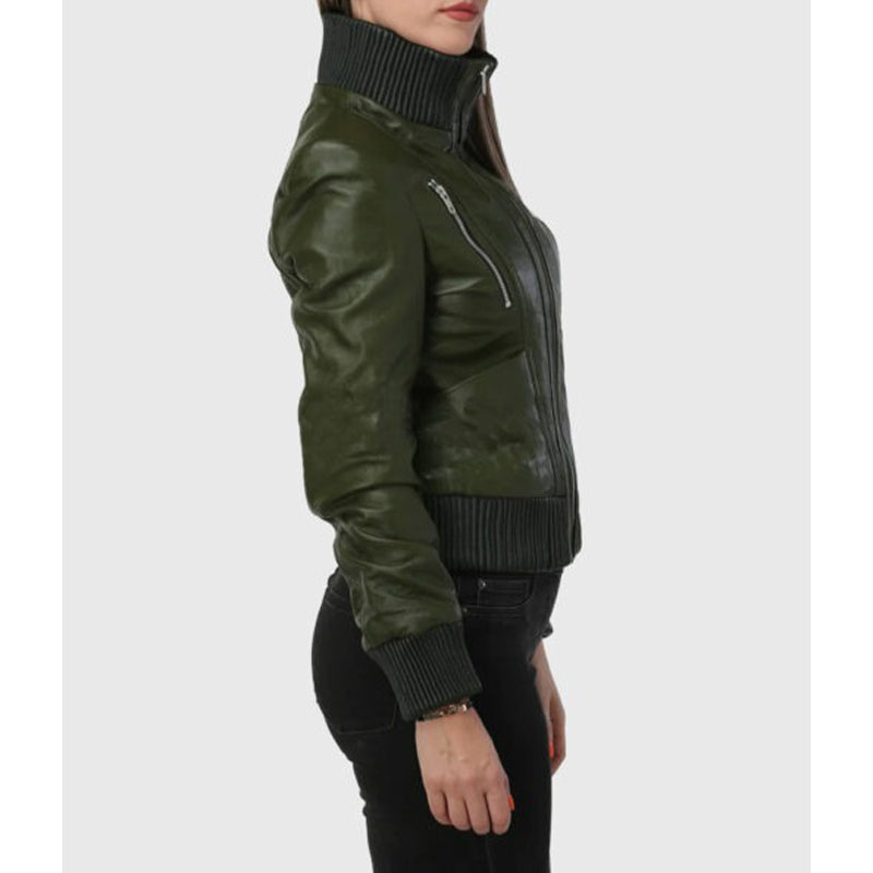 Womens Green Bomber Leather Jacket